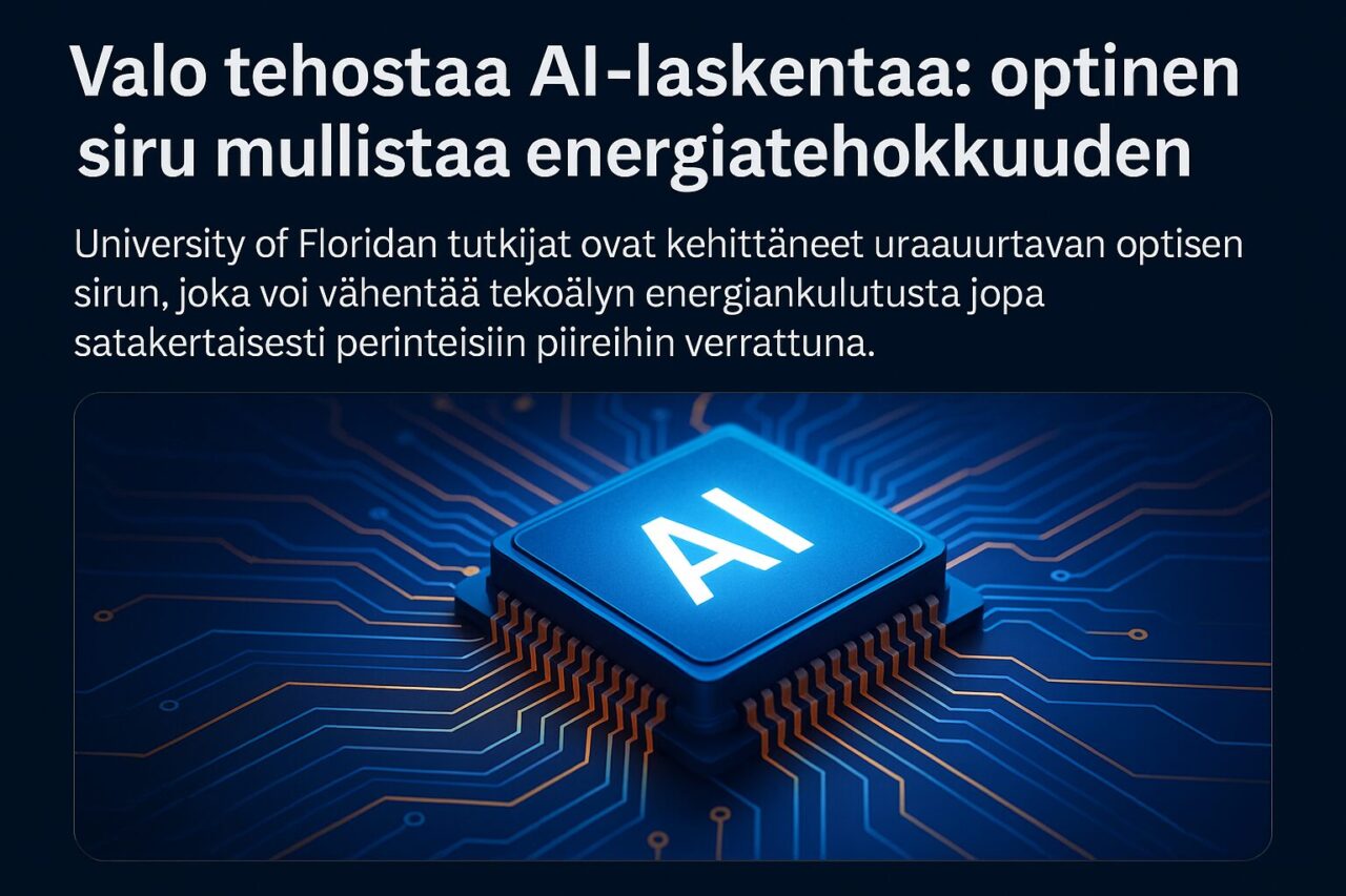 University of Floridan tutkijat ovat kehittäneet uraauurtavan optisen sirun, joka voi vähentää tekoälyn energiankulutusta jopa satakertaisesti perinteisiin piireihin verrattuna. Kyseessä…